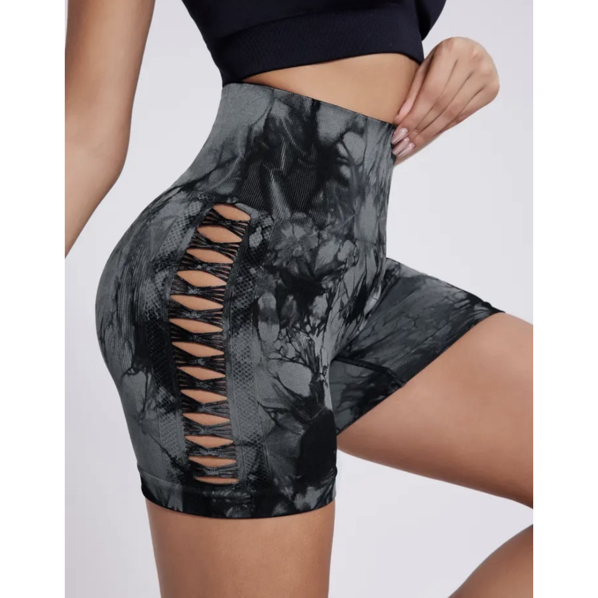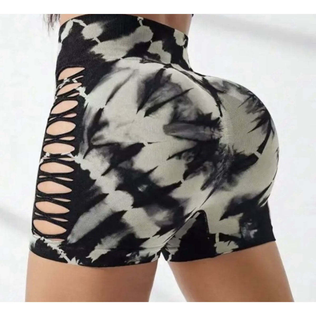 Велосипедки жіночі шорти з розрізом для спорту та фітнесу шорти мармурові пуш ап тай дай розмір S/M