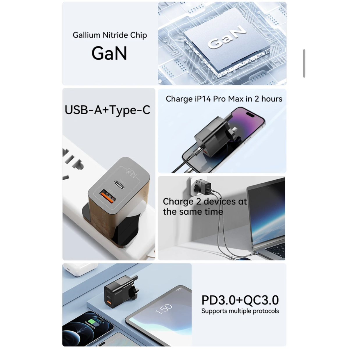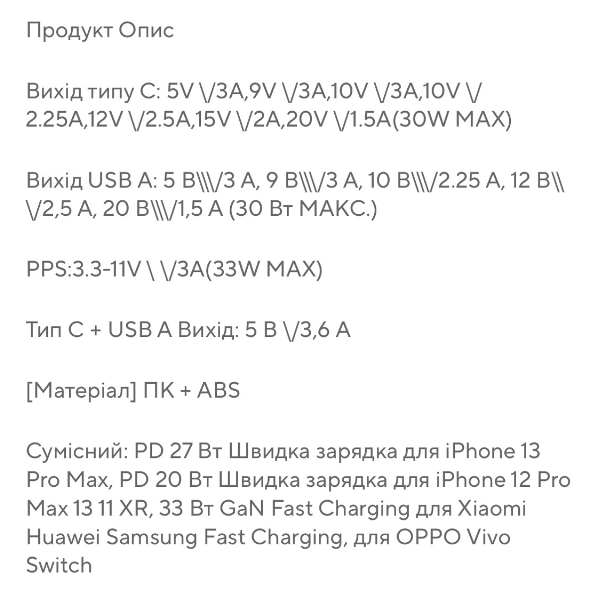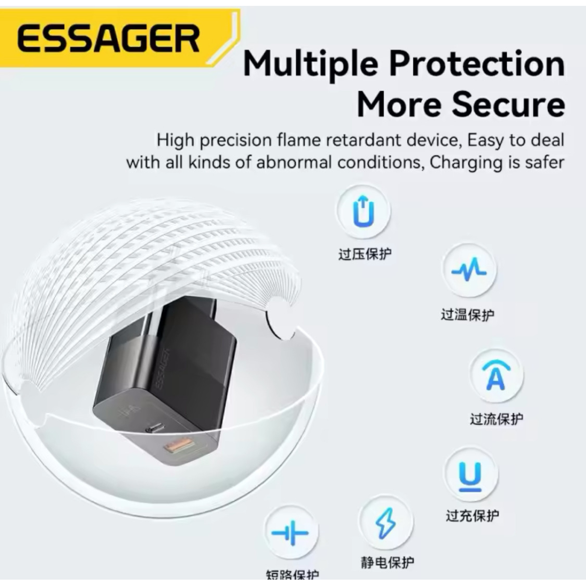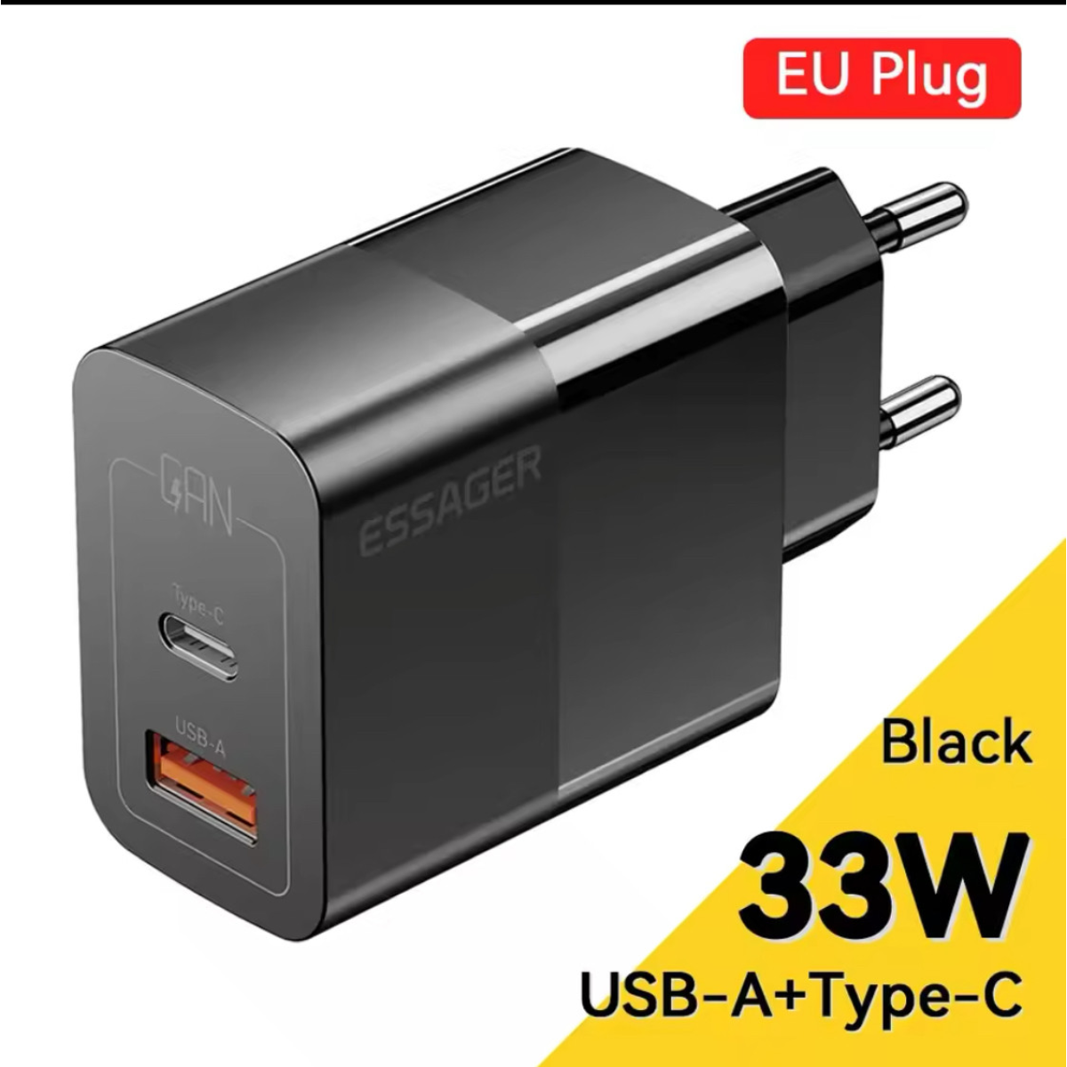 Швидкий зарядний пристрій ESSAGER 33 W два вхідні розʼєми під USB та Type C для усіх телефонів та планшетів