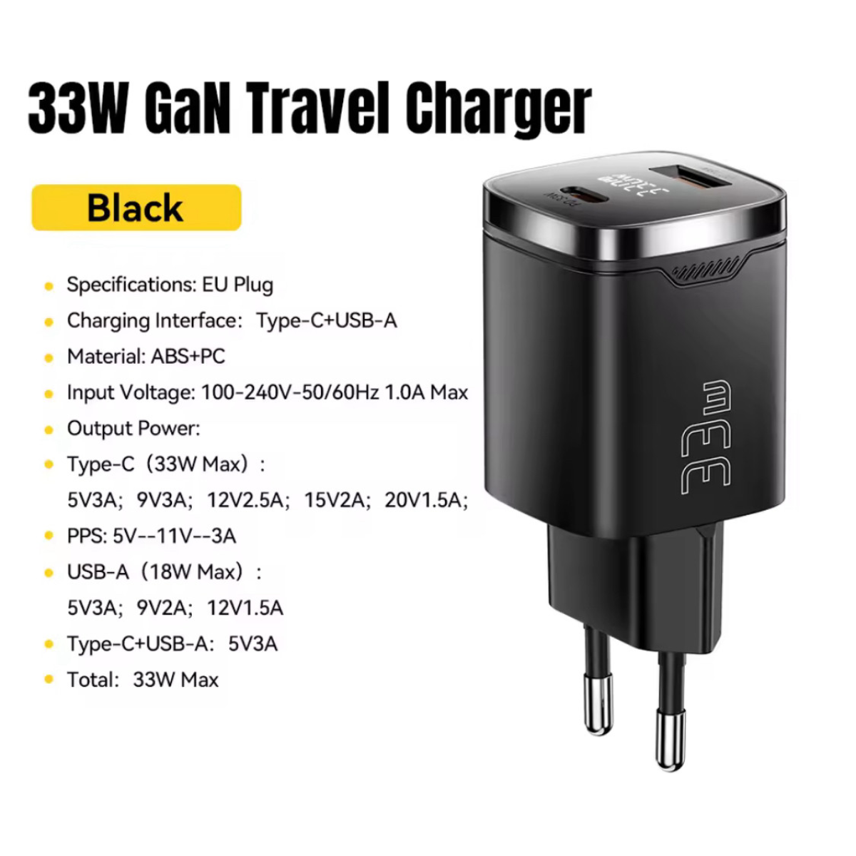 Швидкий зарядний пристрій ESSAGER 33 W два вхідні розʼєми під USB та Type C для усіх телефонів та планшетів